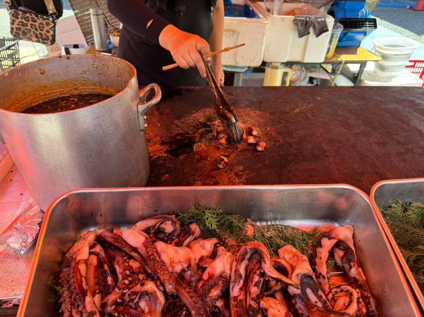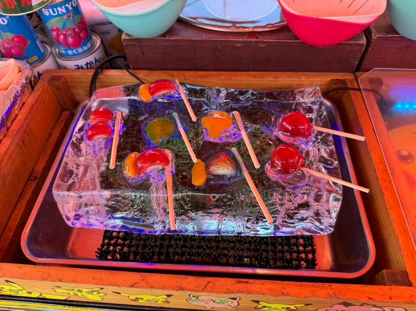 冷たいフルーツ飴🍓や、ジュワっと香ばしいタコ焼き🐙など、昔ながらの屋台グルメが勢揃い!