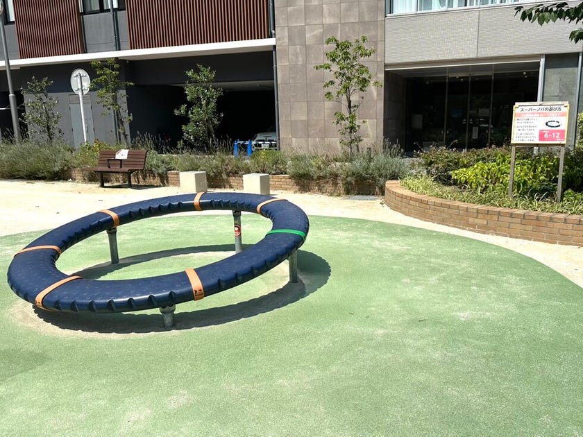 カラフルなすべり台やアスレチック遊具に加えて、ちょっと珍しい「スーパーノバ(ぐるぐる回る遊具)」もあります!