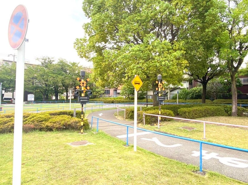 その名の通り、園内には信号や横断歩道、踏切などが整備されていて、子どもたちが遊びながら交通ルールを学べる公園です。