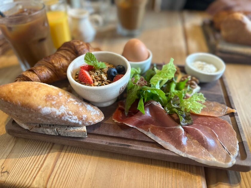 クロワッサンやバゲット🥖はもちろん、ハムやサラダが彩られたプレートランチを堪能🍽