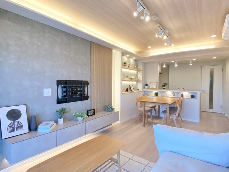 8. 飾り棚や間接照明が印象的なLDKのデザイン